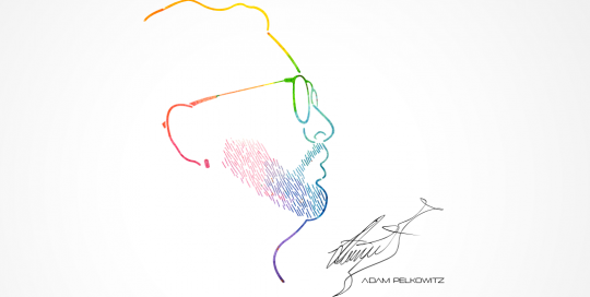 Adam Pelkowitz - a professional film editor, voice over artist, performing artist, actor, singer and teacher wanted something similar to the famous Alfred Hitchcock outline - we gave him just that, but we added a beautiful splash of color and personal signature.