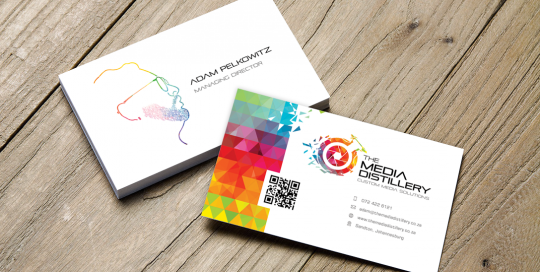 Just like their colorful, dynamic and beautiful logo - the business cards had to match. We gave Adam - the face of The Media Distillery, his unique outline on the front and using the colorful logo background as a design element on the back, gave these cards that striking look which he was after.